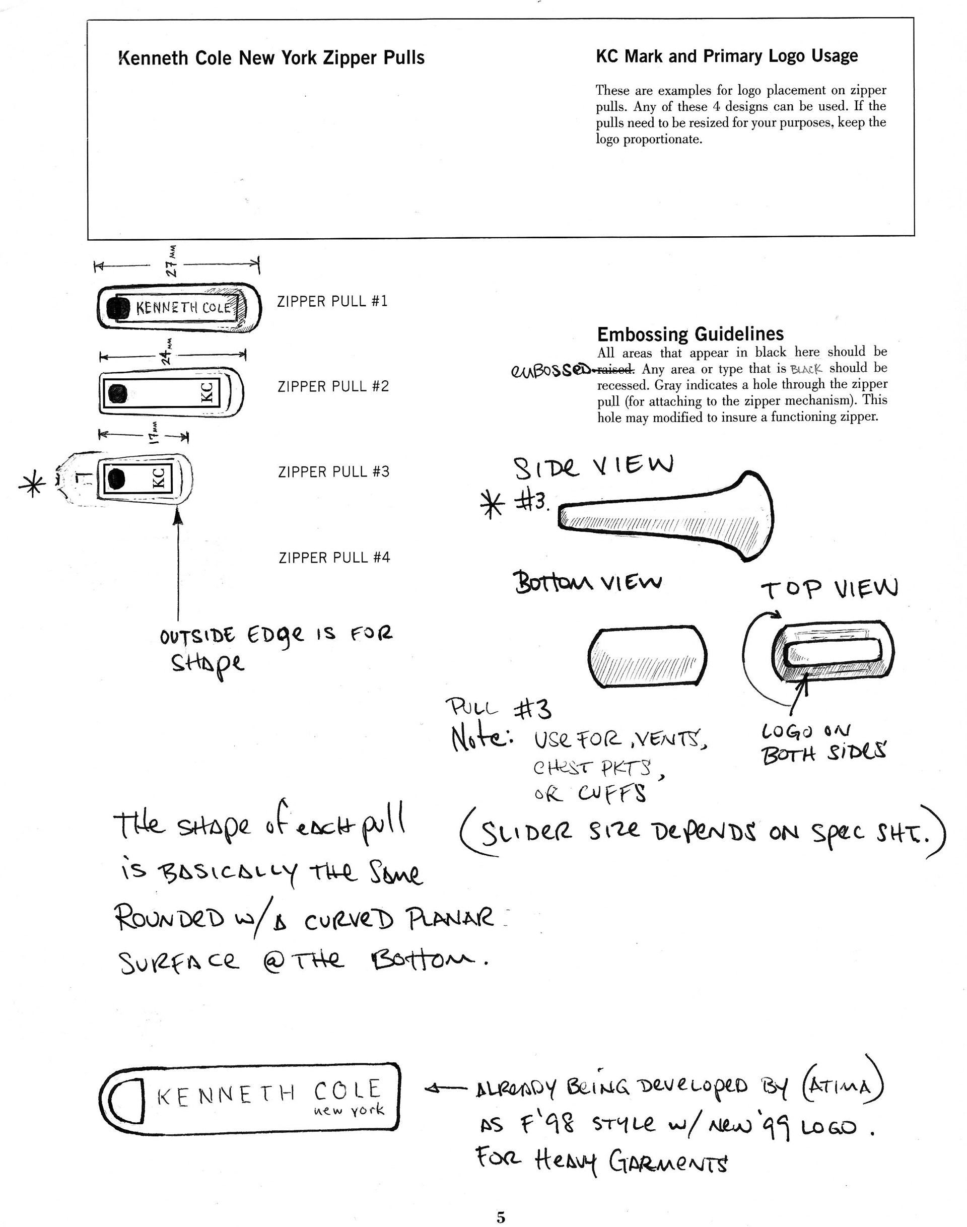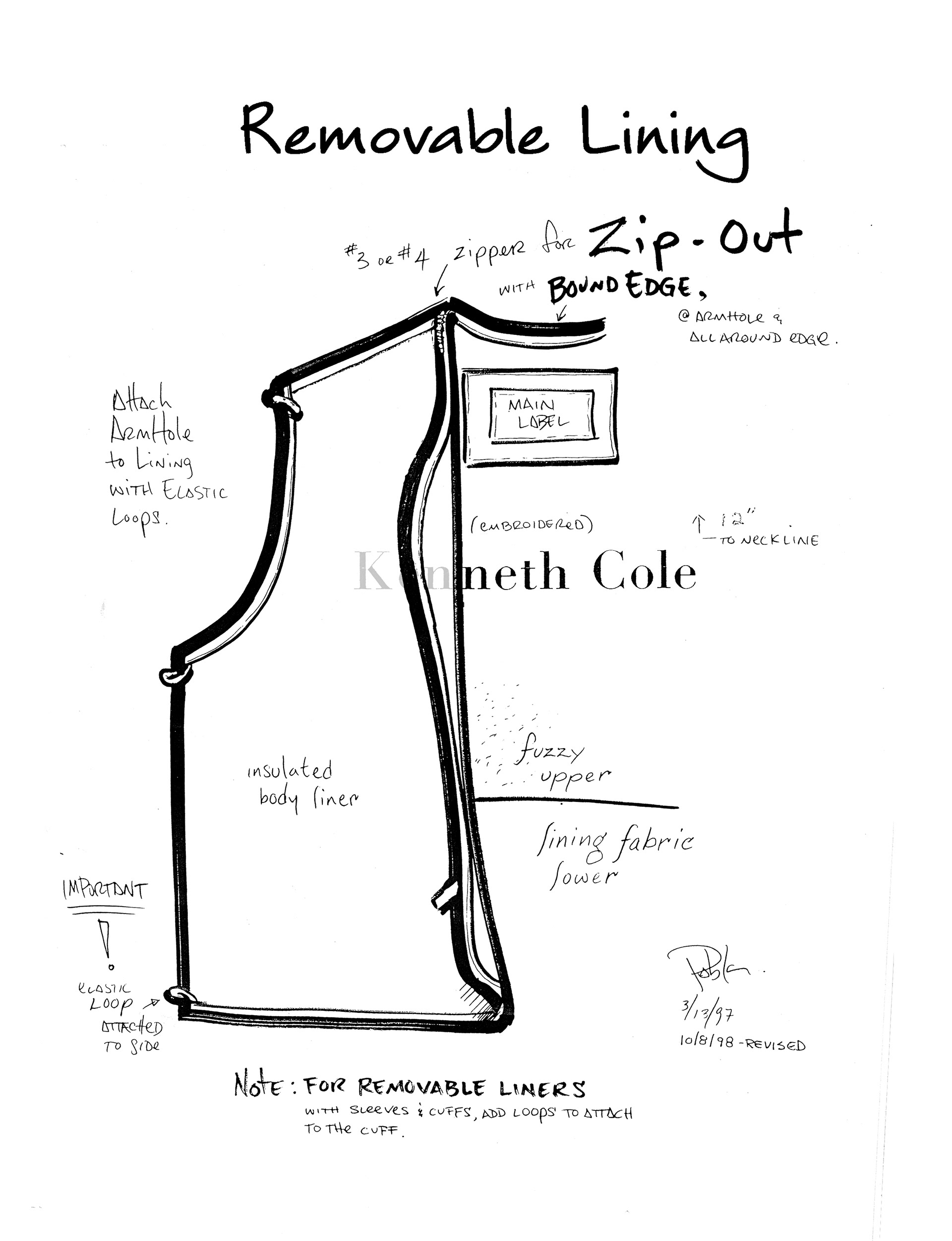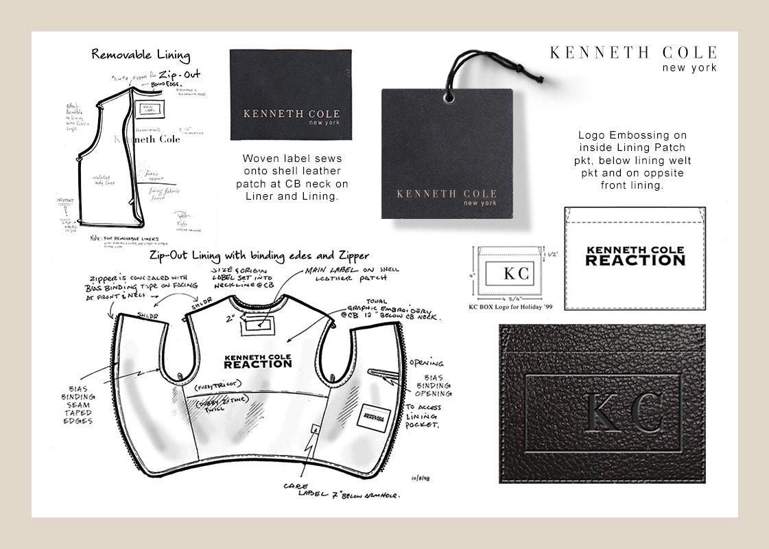 Sample trim detailing used in the Brand Identity and garment design of the Outerwear of Kenneth Cole.